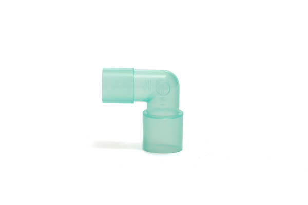 Fixed elbow, connection sizes 22F/22M, for hospital anaesthetic circuits etc, green clear colour
