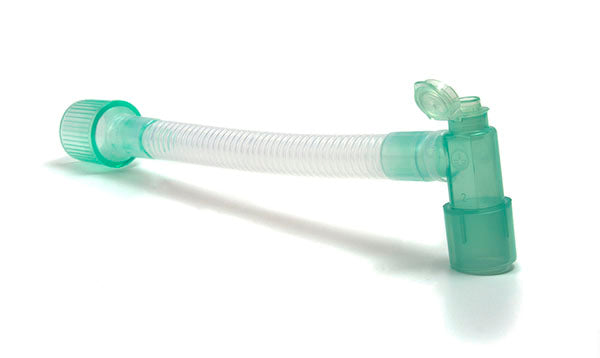 Flexible straight catheter mount, Intersurgical Intranet | Airway Management | Flexible catheter mounts | 3508000 - Flexible fixed elbow catheter mount, 22F - flip top cap with 7.6mm port - 22M/15F, ≥170mm long