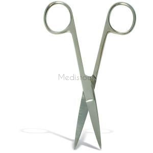 Scissors, Nurses 5" S/S Stainless Steel, Each. Quality stainless steel scissors with 2 sharp blades, ideal for cutting bandages and tape quickly and safely.