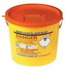 Sharps Bin 22L, Orange Lid, 10 Box. The 22L Sharpsguard Sharps bin with orange lid is an ideally sized multipurpose container suited to higher volume clinical use. The Sharpsguard 22L has a sturdy side handle to facilitate safe transportation and a wide aperture, orange safety lid. This popular orange 22L Sharps box is supplied complete and ready for assembly.