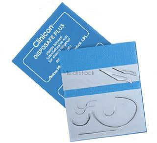 Sharps Pad, Each. Disposafe plus mats, sterile EO, single use, box of 50 Individually packed units. Tough plastic backing gives increased resistance to penetration. Extra large adhesive area gives enhanced visibility and holds more sharps, with separate adhesive strip for blades.